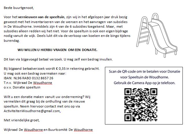 De uiteindelijke speeltuin is afhankelijk van reacties van bewoners, gemeente en de toezegging van subsidies. Tijdens de Burendag 2024 hebben we de reacties van bewoners gepeild middels een enquête na een presentatie. Hieruit is onder andere naar voren gekomen dat een overgroot deel van de buurtbewoners meerdere kleine toestellen fijner vindt, dan één groot toestel. Er zijn twee plannen gepresenteerd en onderstaand idee is naar voren gekomen. Onderstaand idee is niet definitief, maar een indicatie van hoe het er uit kan komen te zien: